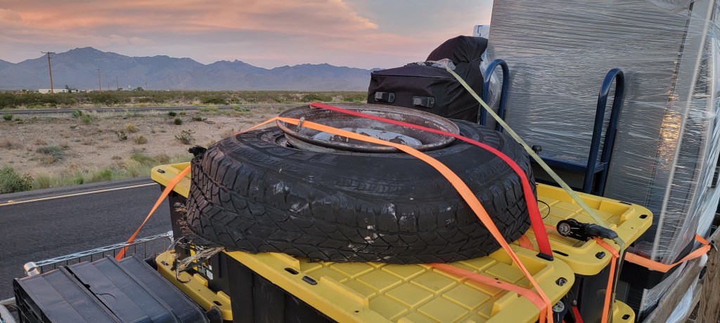 Near Henderson, NV, Brian radio messaged me and asked if I was using my phone while driving. He noticed that I was swerving on the road. I explained to him that I felt like I was on ice. Within a few minutes, while I was driving, I suddenly heard a loud boom. It was unmistakable, and I knew I had a blown tire. Just as I was trying to process what had happened, I received a radio message from Brian. He informed me that I had experienced a left rear tire blowout. The timing of it all was quite remarkable – within just a few minutes, my peaceful drive had turned into a chaotic situation.