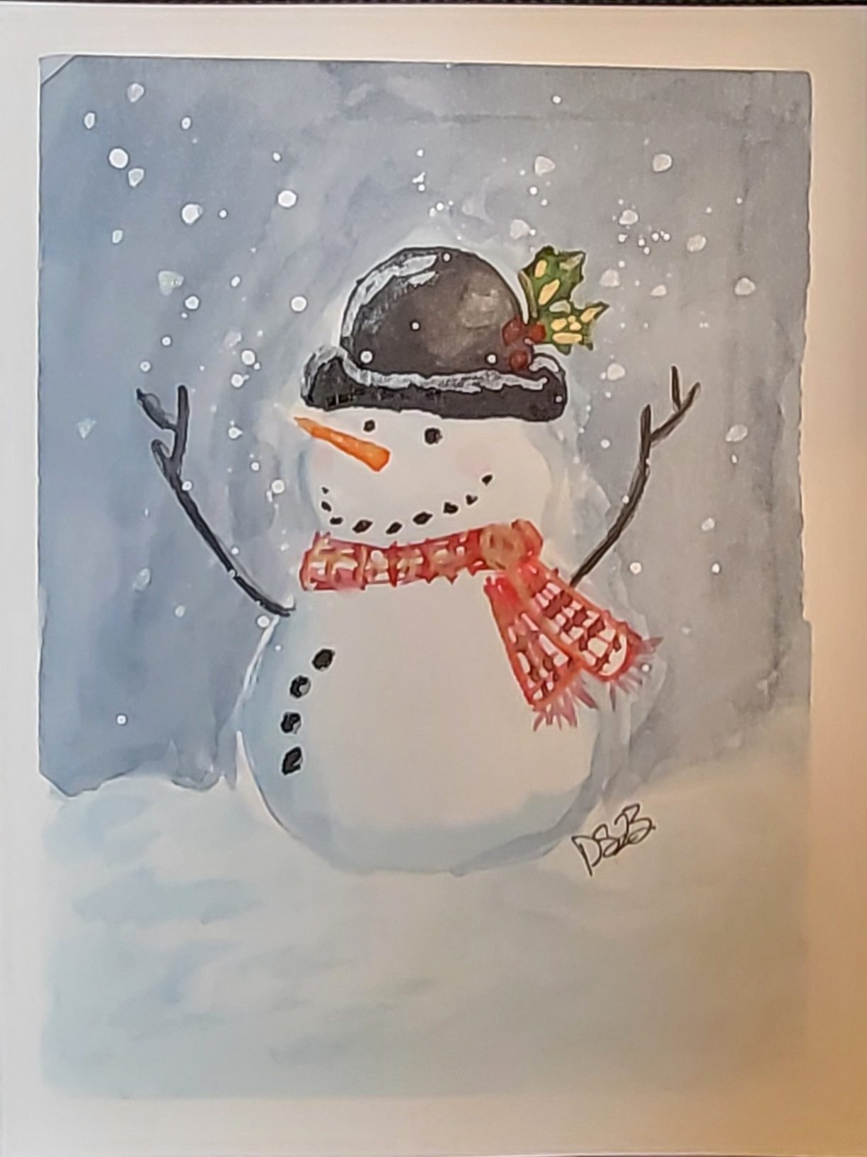 I love to paint! So I made one special card this year for a friends mom who is having some health issues. She loves snowmen so this card was exclusively for her. I find fun and enjoyment in creating for others. This was my recent.