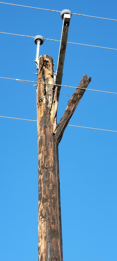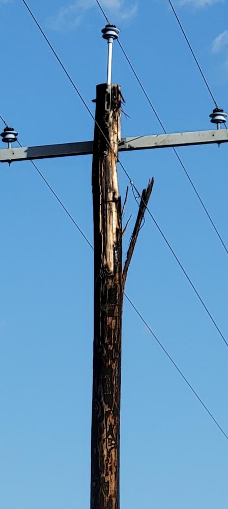 Yesterday we were informed that a power pole was struck, down the road. We took a 200 yard walk to the pole and the photos are what we found.