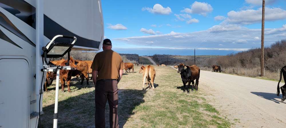 This was Brian’s favorite cow. She came to visit him daily when the rancher let them out to wander past our RV. Good Old Number 45 is what he named her. Watching them come by with new calves was fun. We just shooed them on their way.