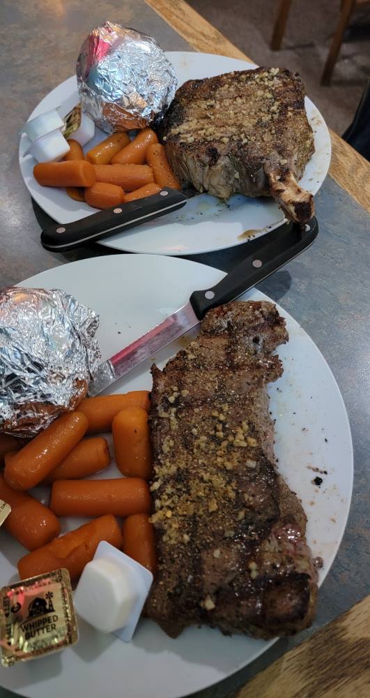 Brian loved the Tomahawk steaks there. When it says serves 2 it should have but it rarely made it home. I usually had the New York Strip. So those 2 alone totaled up to $97. Some nights we had baked potatoes with it, others the mashed potatoes were very good with brown gravy. After having a few beers before dinner and a couple of mixed drinks with dinner. I can easily say they were always the most expensive meals we had ever had that were actually good! I would say yes they were worth it.