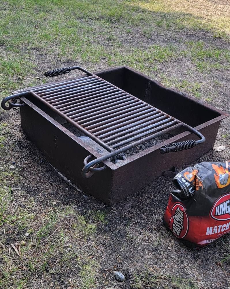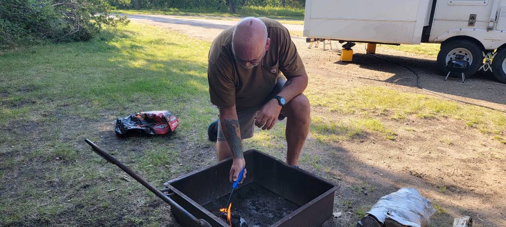 We had one night that it wasn’t too bad and we were able to BBQ a steak on the camp ring grill. It was pretty rusty so Brian was going to use a wire brush on it to clean it up some. He went to the truck to get one. When he came back he had the drill gun in his hand with a grinding disk. All I could do was laugh and get a bit of video for this!