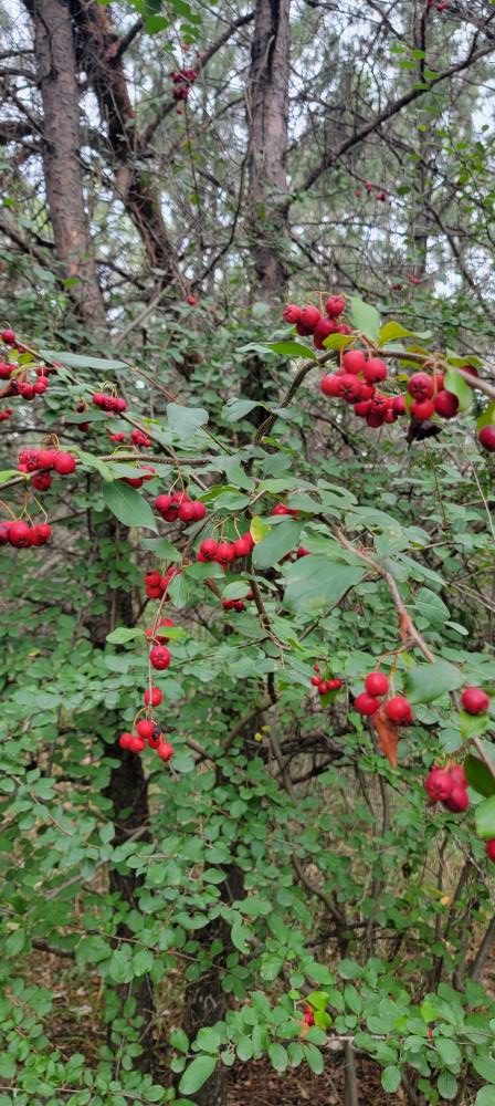 There are a lot of squirrels in the park. They were all very busy collecting goodies for fall and winter. We watched one carry a pinecone bigger than it was through the forest canopy way up high. This one was eating what we think was a hawthorn berry. One closer to our campsite was eating a wild plum. The plum was almost the size of its head.