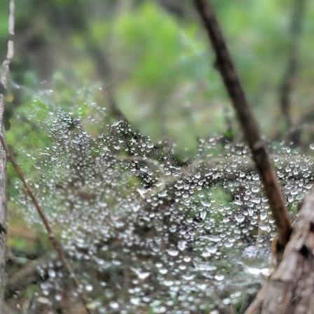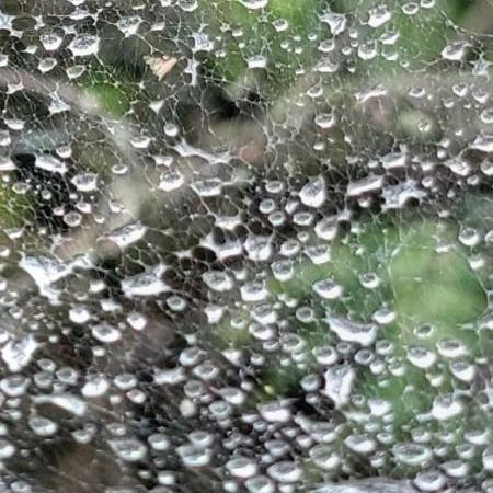 As we wound around the trail Brian pointed out a web covered in dew. I thought it was really pretty and tried to capture the droplets with my camera. No spider to be found in the web but the blown up photo really shows how intricate they are.