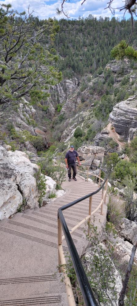 Leaving Carlsbad getting to Kingman, AZ was an adventure. We made it to just the other side of Flagstaff, AZ and lost the alternator in the Beast. The positive and such a blessing was a friend of ours lives in Flagstaff. We were able to reach out to her and have her pick up a new one. By then we had made arrangements to stay at a KOA in Williams, AZ. So we made a day of going to the South Rim of the Grand Canyon on Mother’s Day. In May was a great time to visit. It was not to hot or to cold. We met some very nice people at Walnut Canyon. They invited us to visit when we make it to San Antonio after the harvest season.