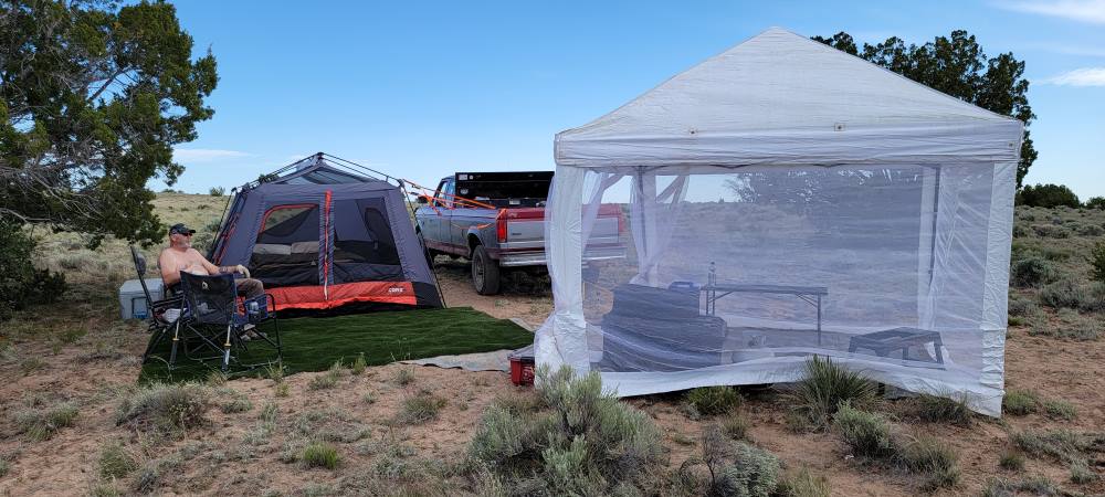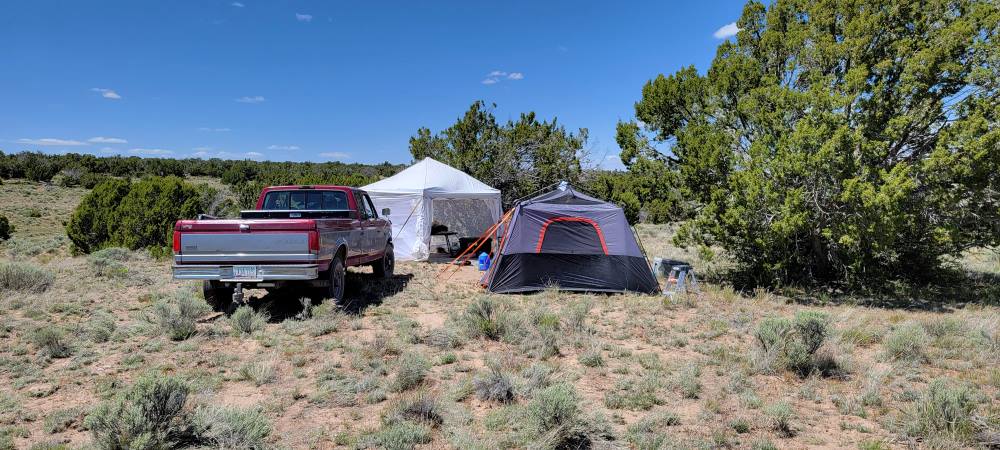 We made it to Kingman, AZ and settled into the RV Park there. Brian spent most of the month finishing working on the shed he had started back in November. May was getting pretty warm there. We took a few days to go to the property over Memorial Day Weekend. Staying in a tent on the property was such a positive for me! Feeling grounded to our land. At 6400′ elevation the nights were cold for sure. We left the rain fly off the tent so we could see the stars until we fell asleep.