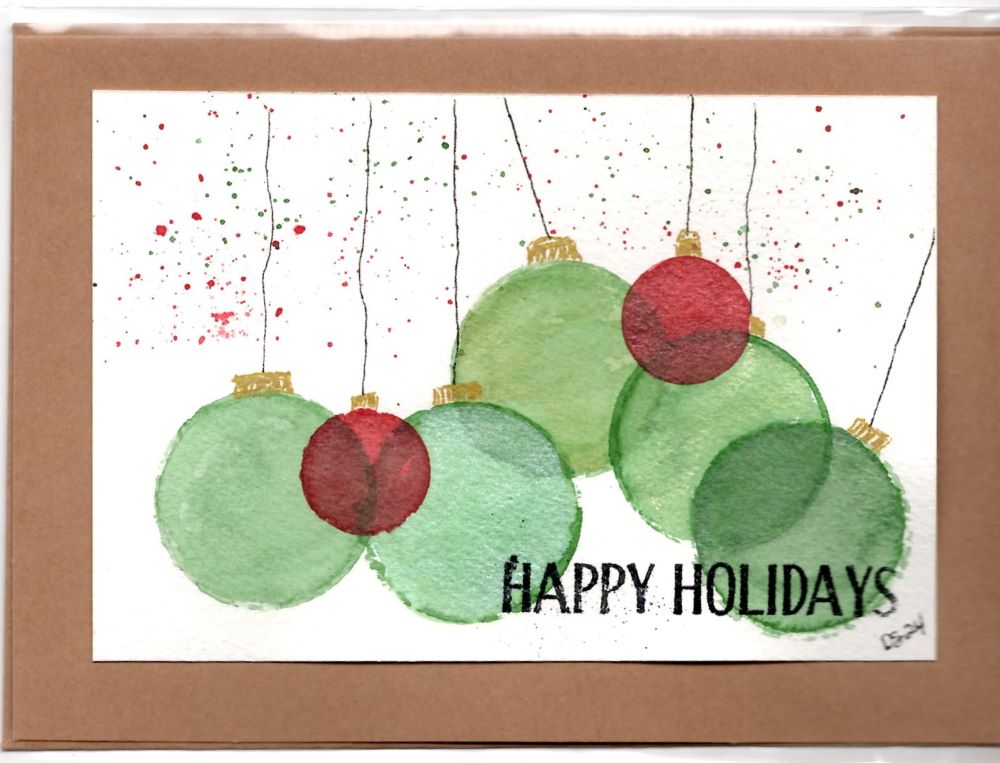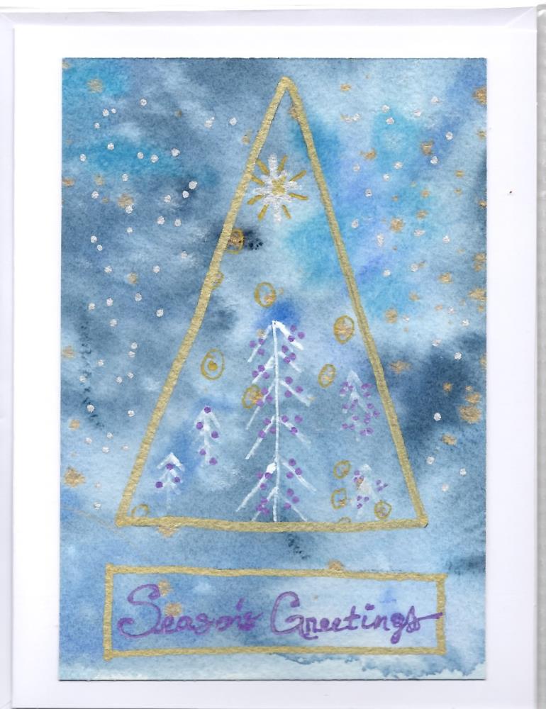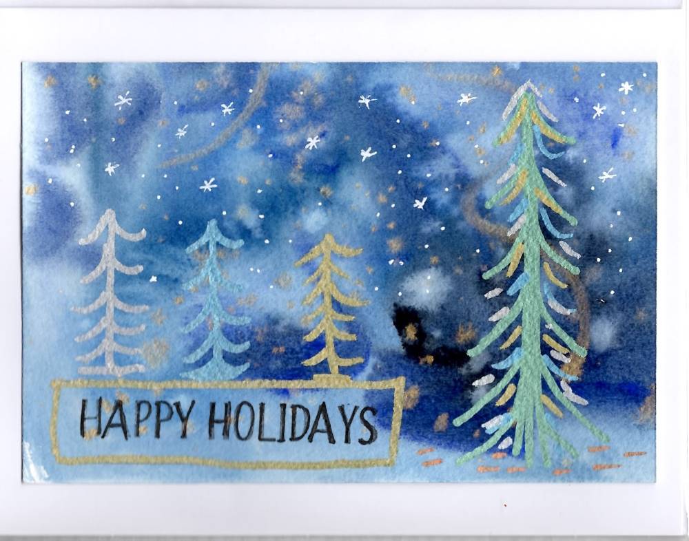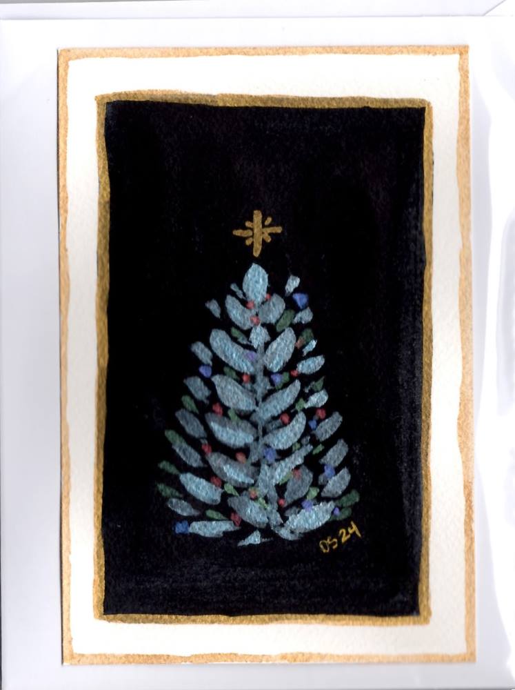 - My Christmas cards are designed with extra sparkle to bring holiday cheer! Many feature painted shimmer or glued glitter for a festive touch, though these details may not fully show up in scans or photos. If you have any questions or need more information, feel free to reach out to me through the contact link below.